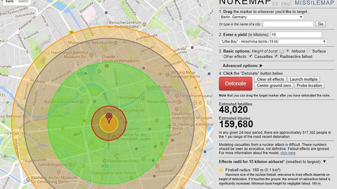 nuclearsecrecy.com/nukemap darf der Nutzer eine Atombombe