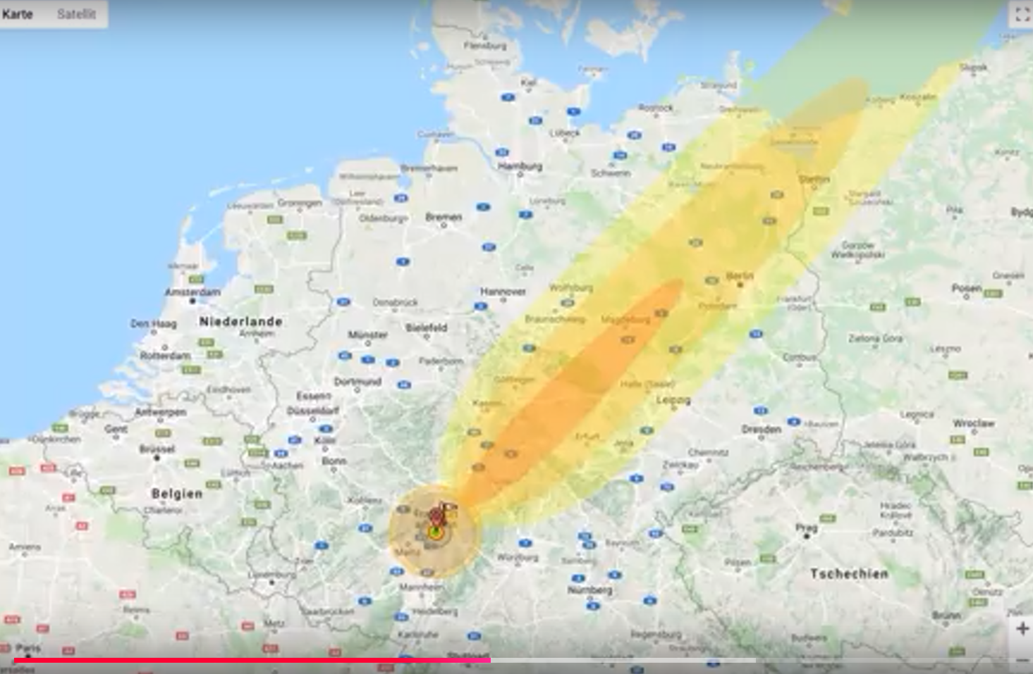 dabei ist der radioaktive Niederschlag, den Nukemap aufgrund des