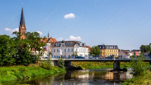 Staßfurt Blick vom Neumarkt zur Bodebrücke und Kirche St.Marien.